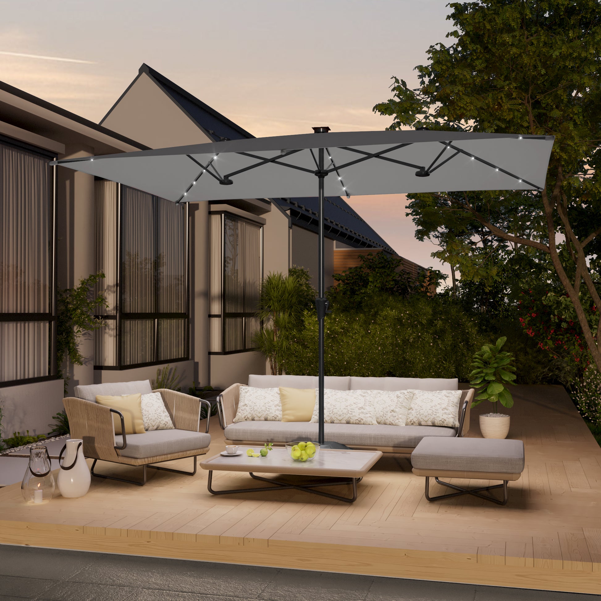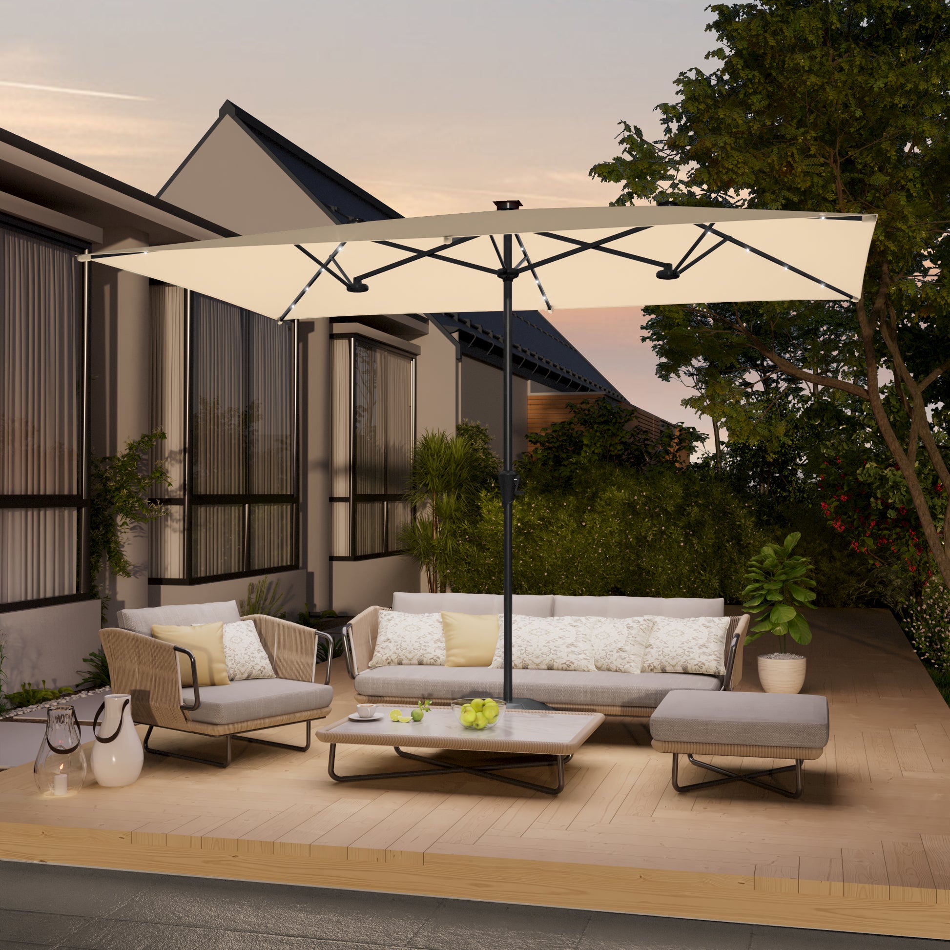 SONKUKI 10 x 6.5Ft Solar-powered Large Double-Sided Rectangular Outdoor Patio Market Umbrella with Crank