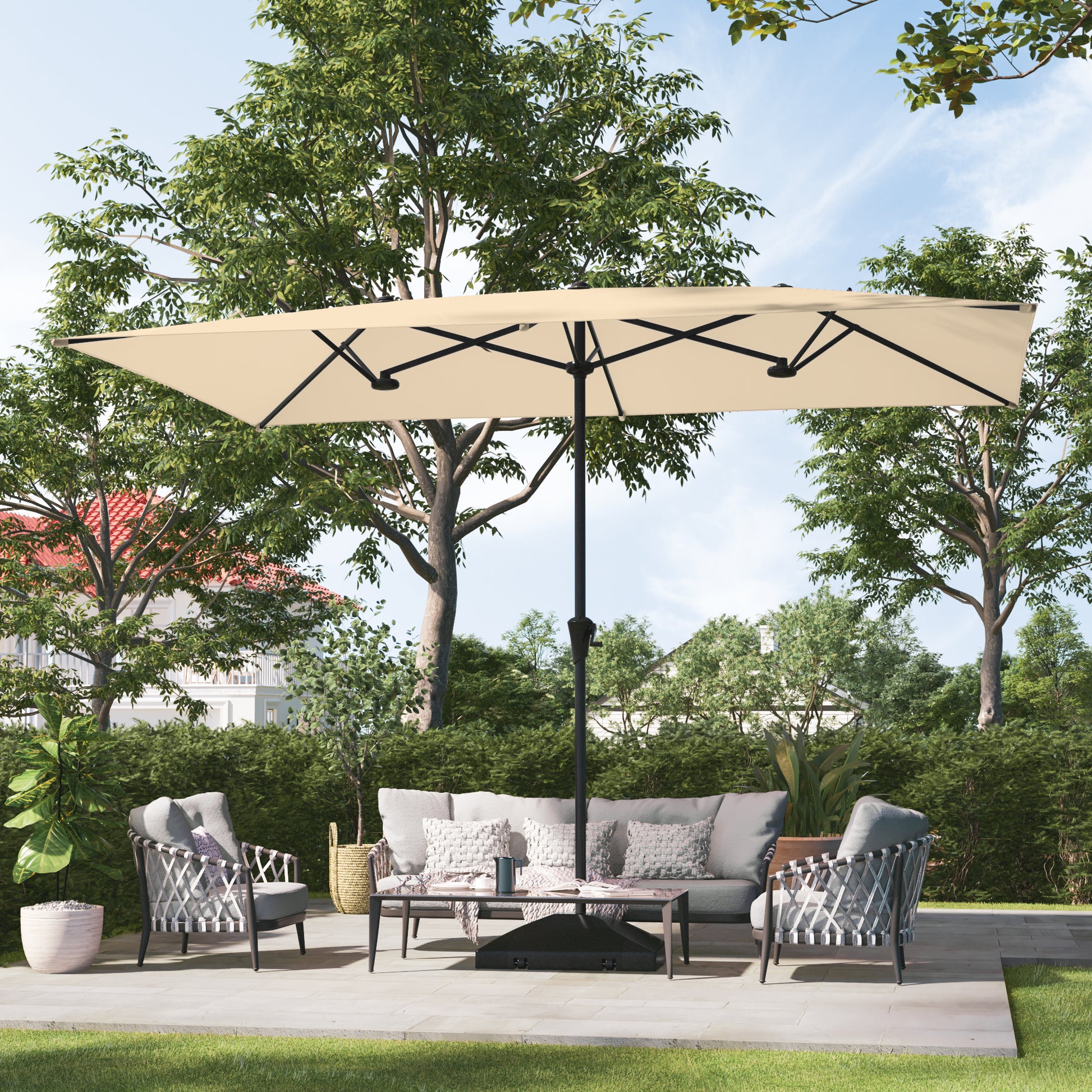 Unleash Outdoor Freedom - Experience outdoor freedom with our double-sided patio umbrella, a revolution in shade technology. Featuring a double-sided design, offering expansive shade coverage. Effortlessly control your shade with the easy-glide crank system, allowing you to open and close easily.