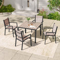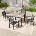 Sonkuki 5-Piece Patio Dining Furniture Set, with Textilene Chairs Resin Tabletop for Garden