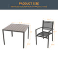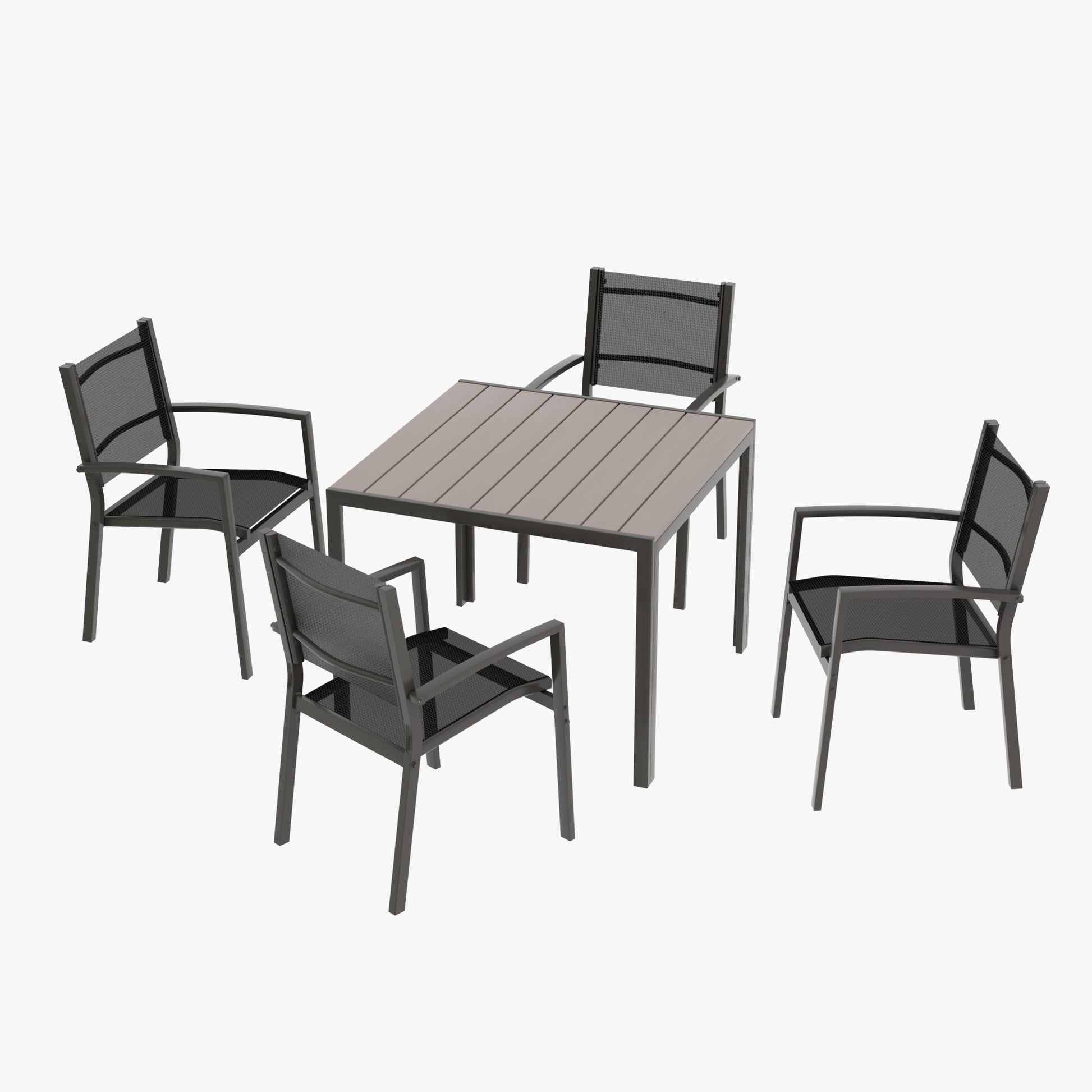 HIPS plastic wood desktop imitates the texture of wood cross-section, showing a stable and simple temperament. Our 5-piece set includes a dining table and six Textliene chairs. Enjoy the summer evening breeze and delicious foods with the family on our Textliene Set. Please note: The set DO NOT include table decorations or cushions.