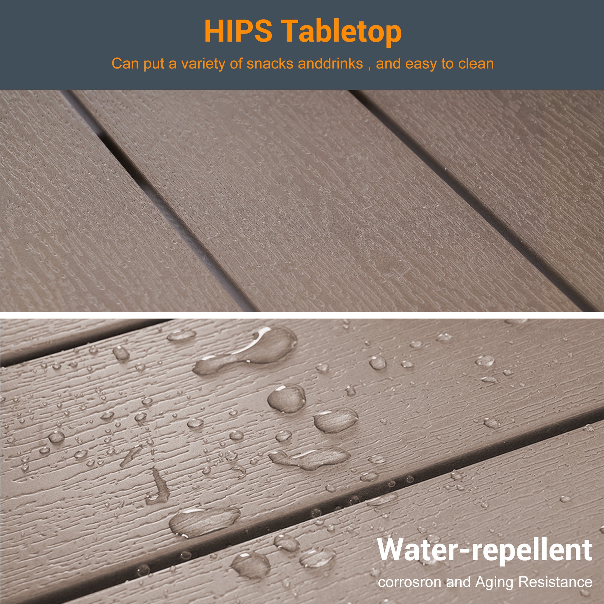 Water-resistant: The textile fabric and HIPS tabletop are all easy to clean and can withstand exposure to the elements